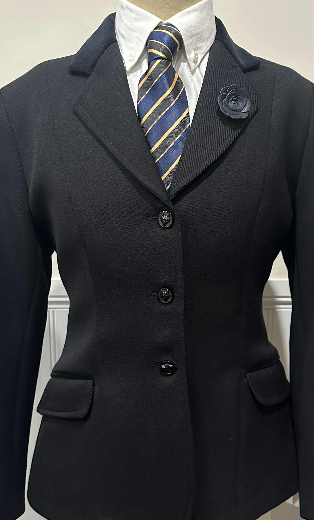 This striped tie combines blue, yellow, and black to create a striking Tie. Will Compliment Navy, or Black Riding Jacket